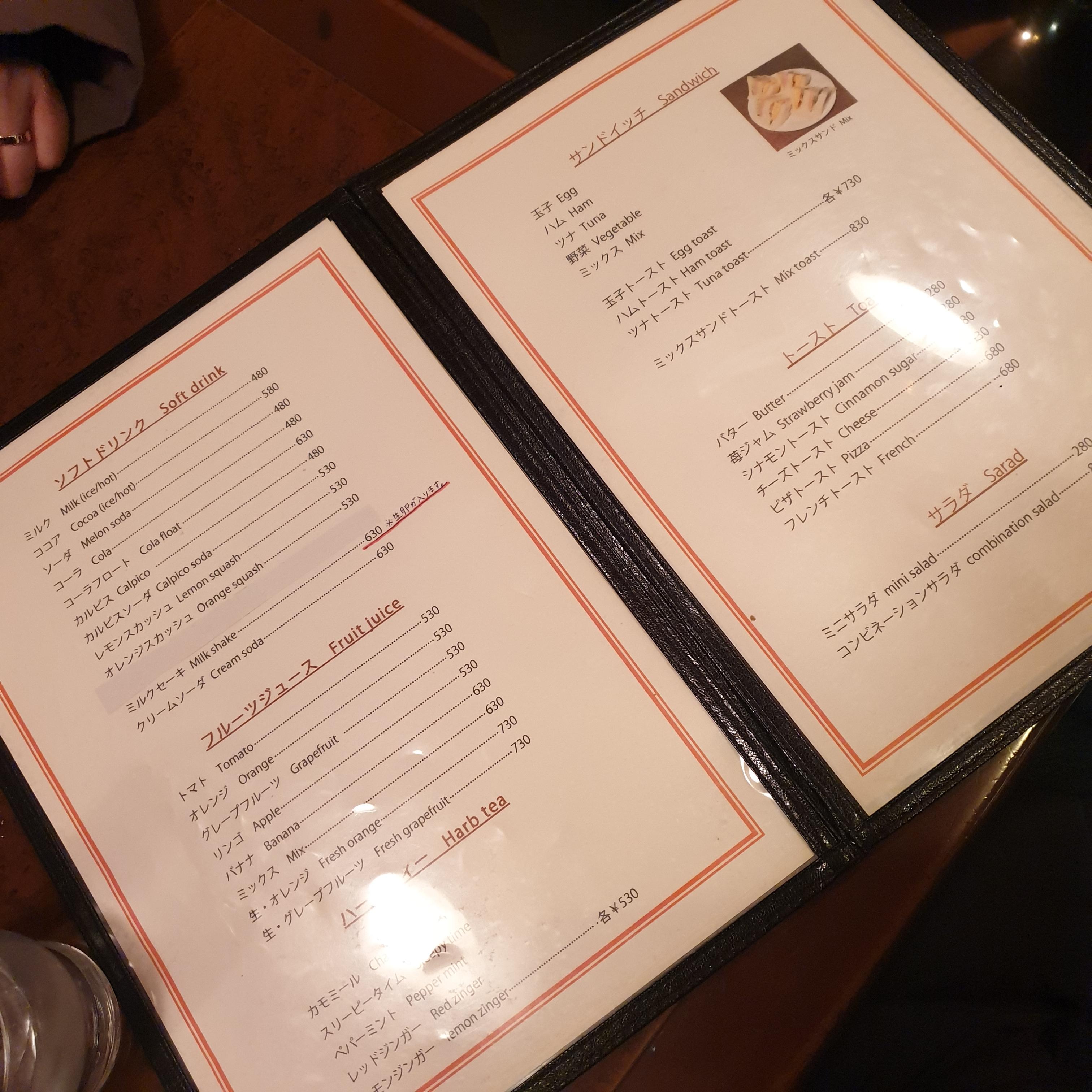 메뉴판은 커피뿐만 아니라 식사까지 준비되어 있었습니다. 담배 냄새 때문에 다른 음식은 시킬 생각을 못하고 사이폰 커피만 빨리 주문했습니다. 킬리만자로와 만델링 원두로 사이폰 커피를 주문했습니다.