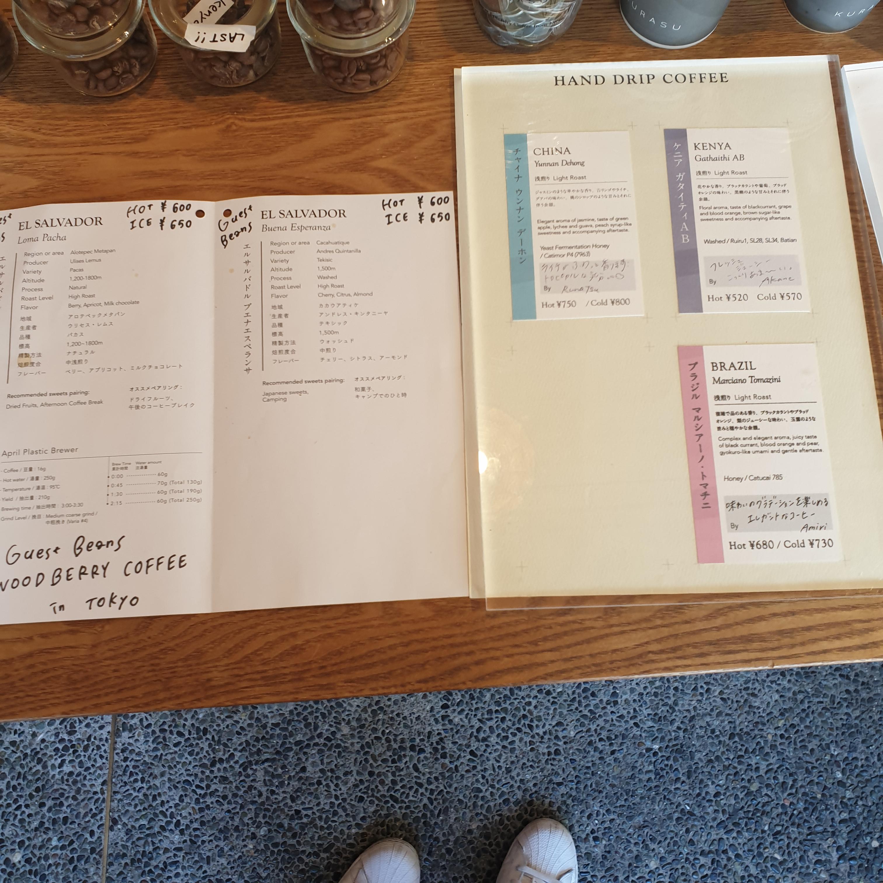 커피는 에스프레소와 핸드드립 그리고 탭 커피가 있습니다. 탭 커피는 미리 추출해 놓은 커피를 생맥주처럼 따라서 제공해 주는 커피입니다.(뜨거운 커피만 있습니다.) 핸드드립은 다양한 원두를 고를 수 있었습니다. 원두마다 가격이 달랐습니다. 이는 우리나라 스페셜티 커피 전문점과 같았습니다.