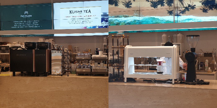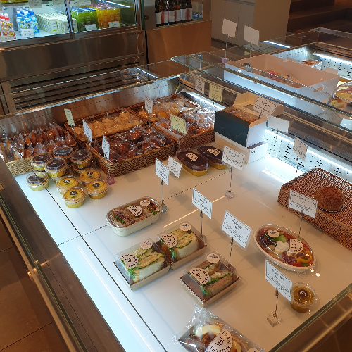 매장은 꽤 넓었습니다. 흰색 베이스로 된 인테리어는 깔끔했습니다. 베이커리답게 중앙에는 빵을 진열해 놓았습니다. 긴 카운터에는 세 대의 POS기와 커피 머신들이 있었습니다. 포스기 숫자를 보면 평소에는 매장을 이용하는 사람들이 많은 것 같습니다.