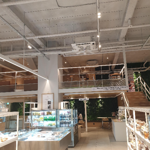 팡뮤제 베이커리는 풍무 웰라움 퍼펙트시티 1층에 있습니다. 해당 건물에 CGV도 있고 주말이라 지하 주차장 1층은 만석이었으나 지하 2층은 주차 공간이 꽤 남아 있었습니다. 매장에 사람이 많을 줄 알았으나 다행히 좌석이 꽤 남아있었습니다.
