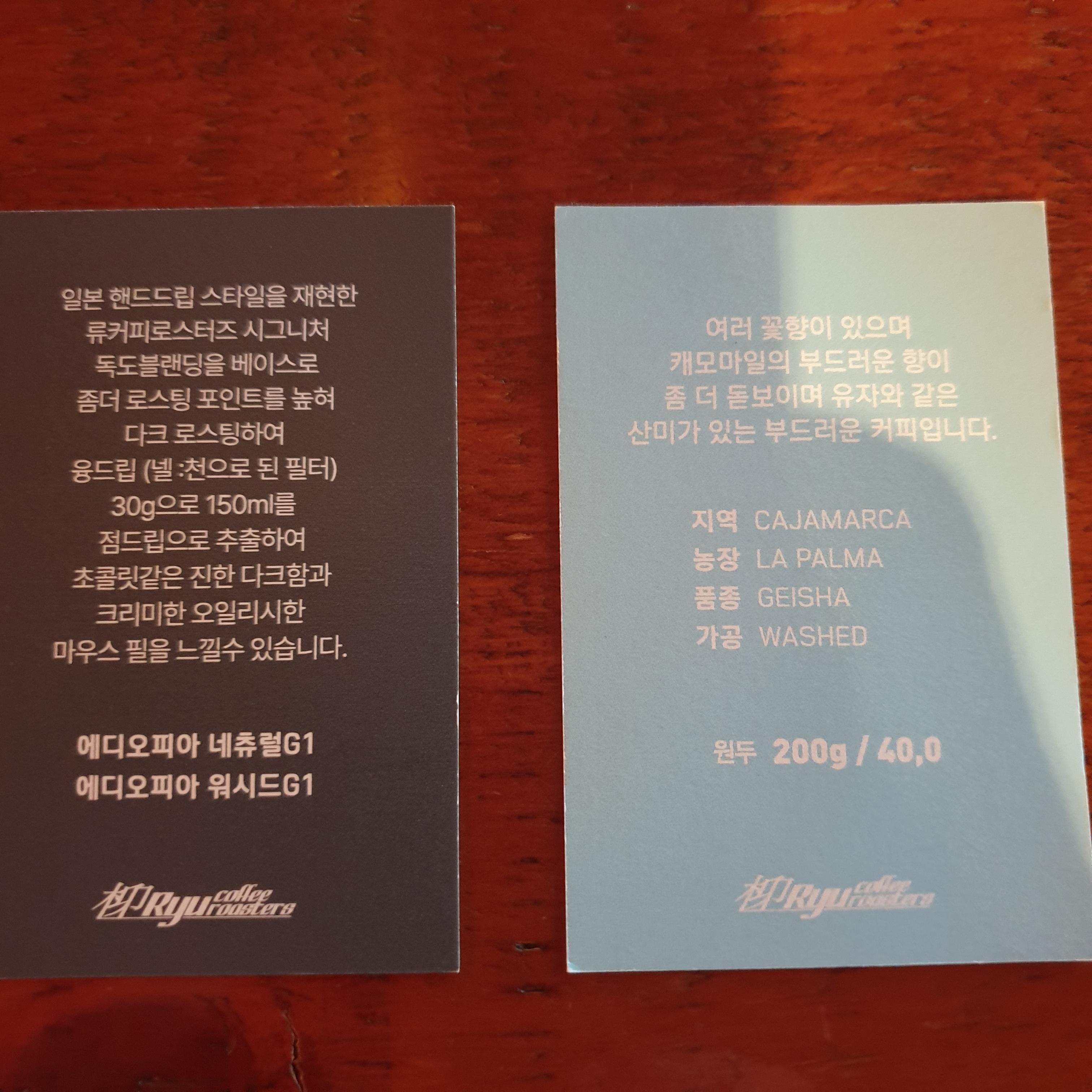 게이샤 커피를 맛있게 먹은 기억이 없는데 이곳 게이샤 커피는 맛있었습니다. 그동안 게이샤 커피를 마셔도 다양한 향을 느끼진 못했는데 류 카페의 게이샤 커피에서는 정말 다양한 꽃향을 느낄 수 있었습니다. 컵노트에 있는 캐모마일 향이 느껴졌습니다. 일반적인 커피에서는 느낄 수 없는 향기들을 느낄 수 있어 기분 좋게 마실 수 있었습니다.