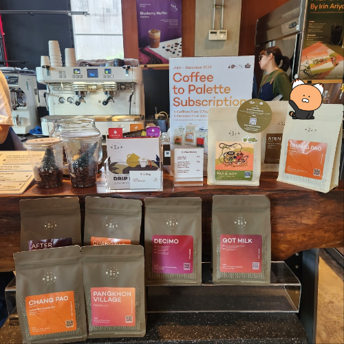 커피 이외에도 다양한 상품들을 판매하고 있었습니다. 케맥스, 컵 이외에도 엽서나 가방류 등이 있었는데 지금 생각해 보면 치앙마이와 관련된 가방들이 아니었을까 싶습니다. (뇌피셜입니다.)