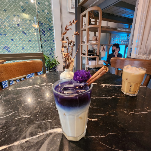 왓포 선착장 근처 숙박한 호텔에서 걸어서 갈 만한 카페를 찾다가 예쁜 시그니처 메뉴가 있는 BLUE WALE Cafe를 발견했습니다.