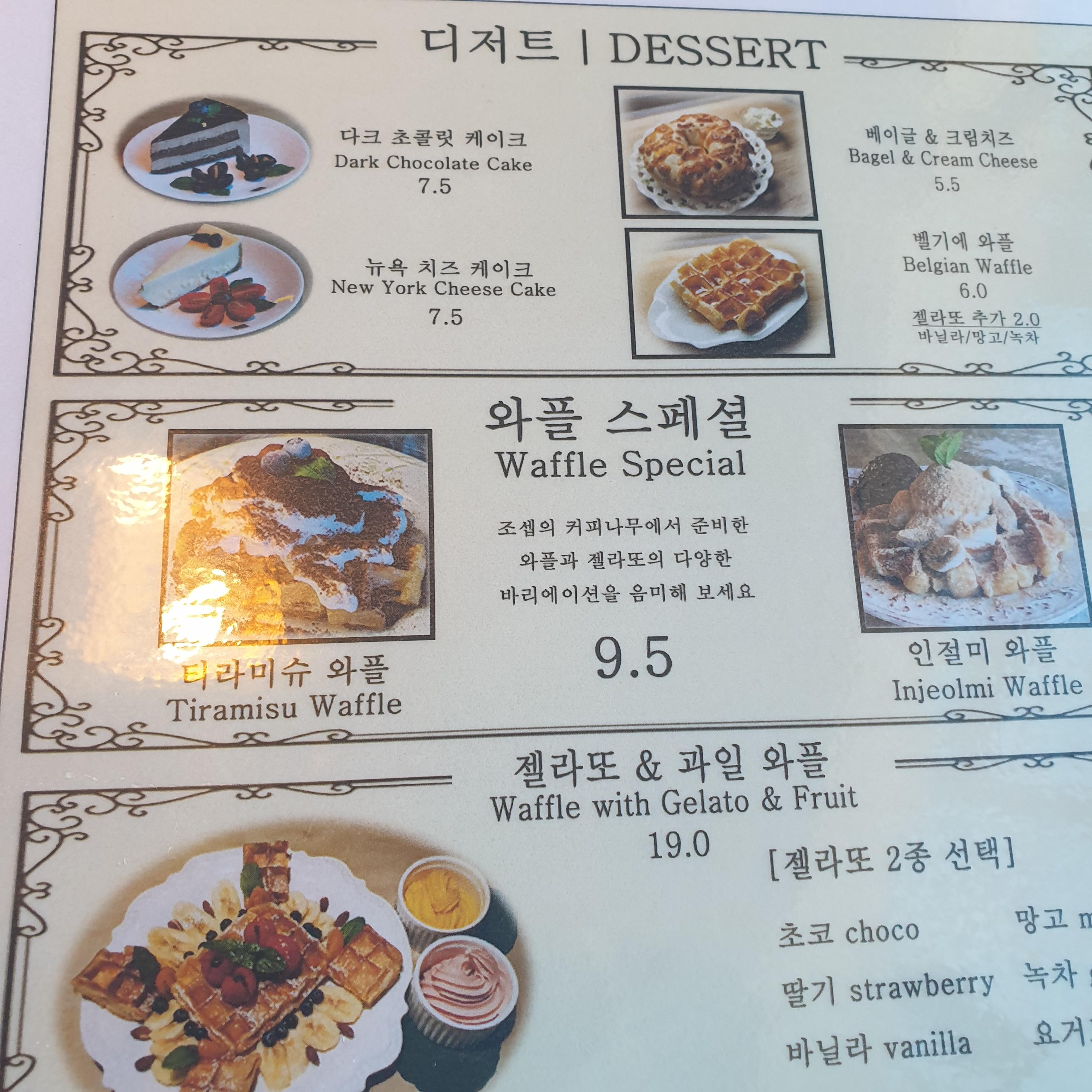 음료 이외에도 케이크, 와플, 젤라토, 샌드위치 등의 다양한 음식들이 있었습니다. 하지만, 점심을 먹고 방문했기 때문에 커피 이외에는 주문하지 않았습니다.