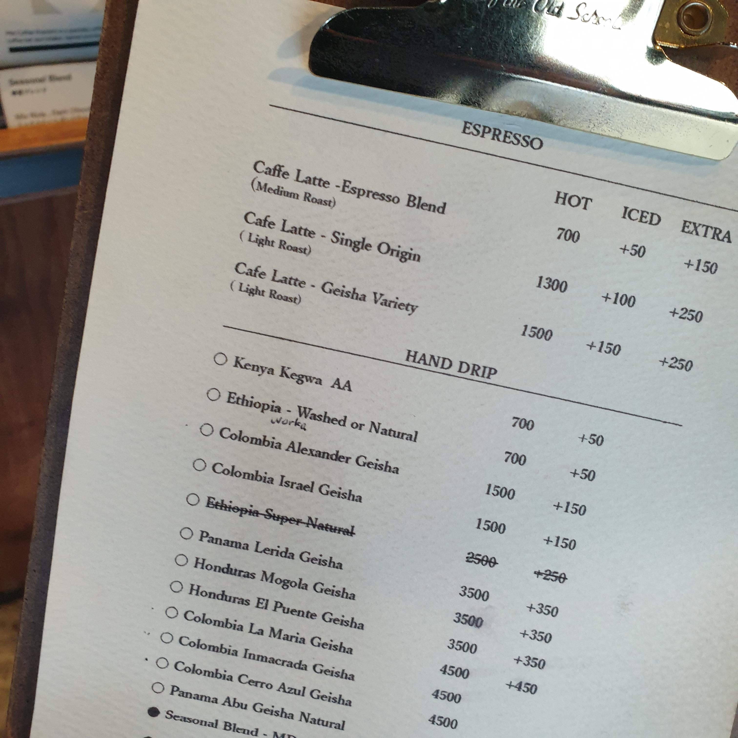 커피는 필터 커피 (핸드드립), 에스프레소, 아메리카노, 라테로 단출했습니다. 원두는 6가지 정도 있었으며 250g, 500g, 1kg 단위로 판매했습니다. 원두를 구매하면 패키징을 다시 해주었습니다.