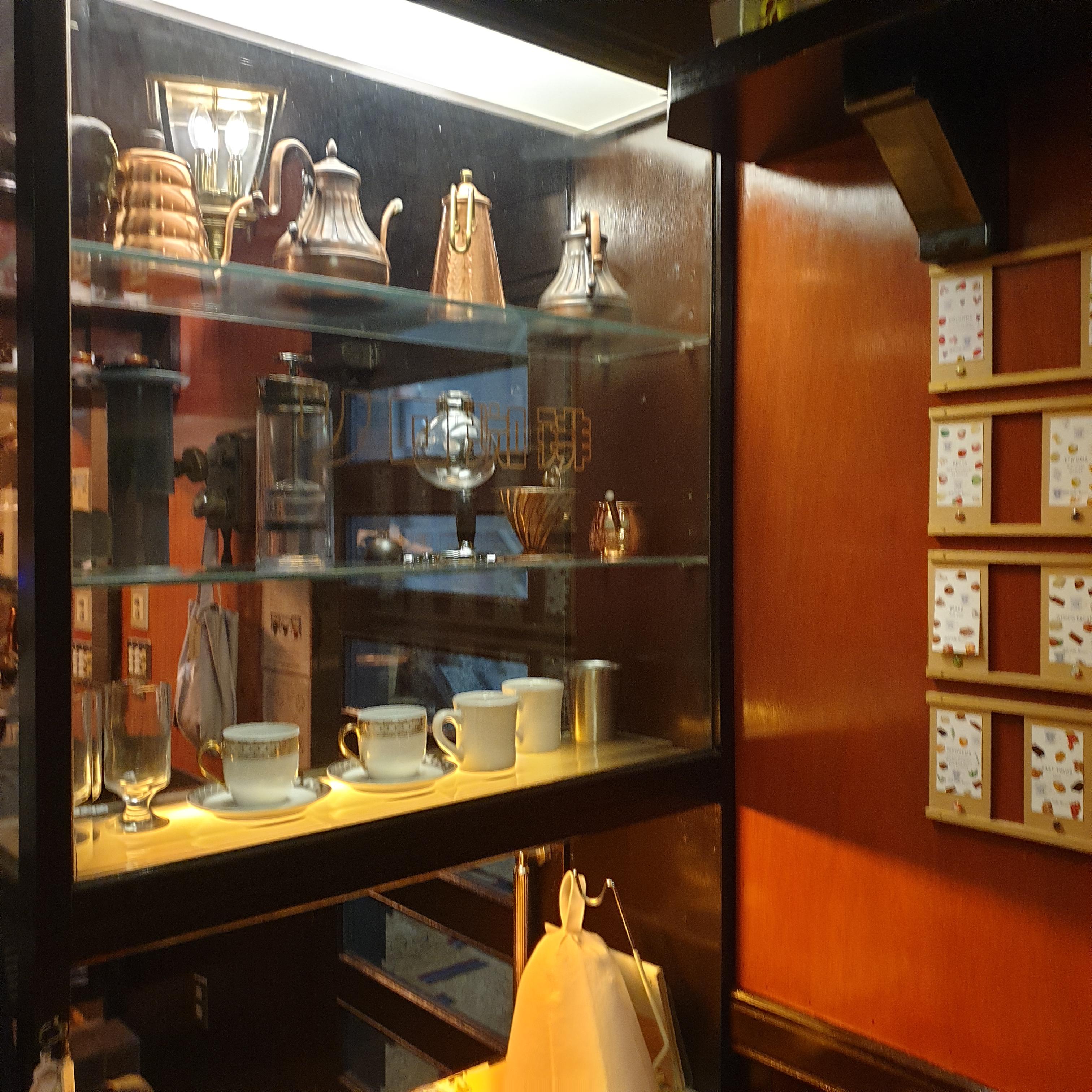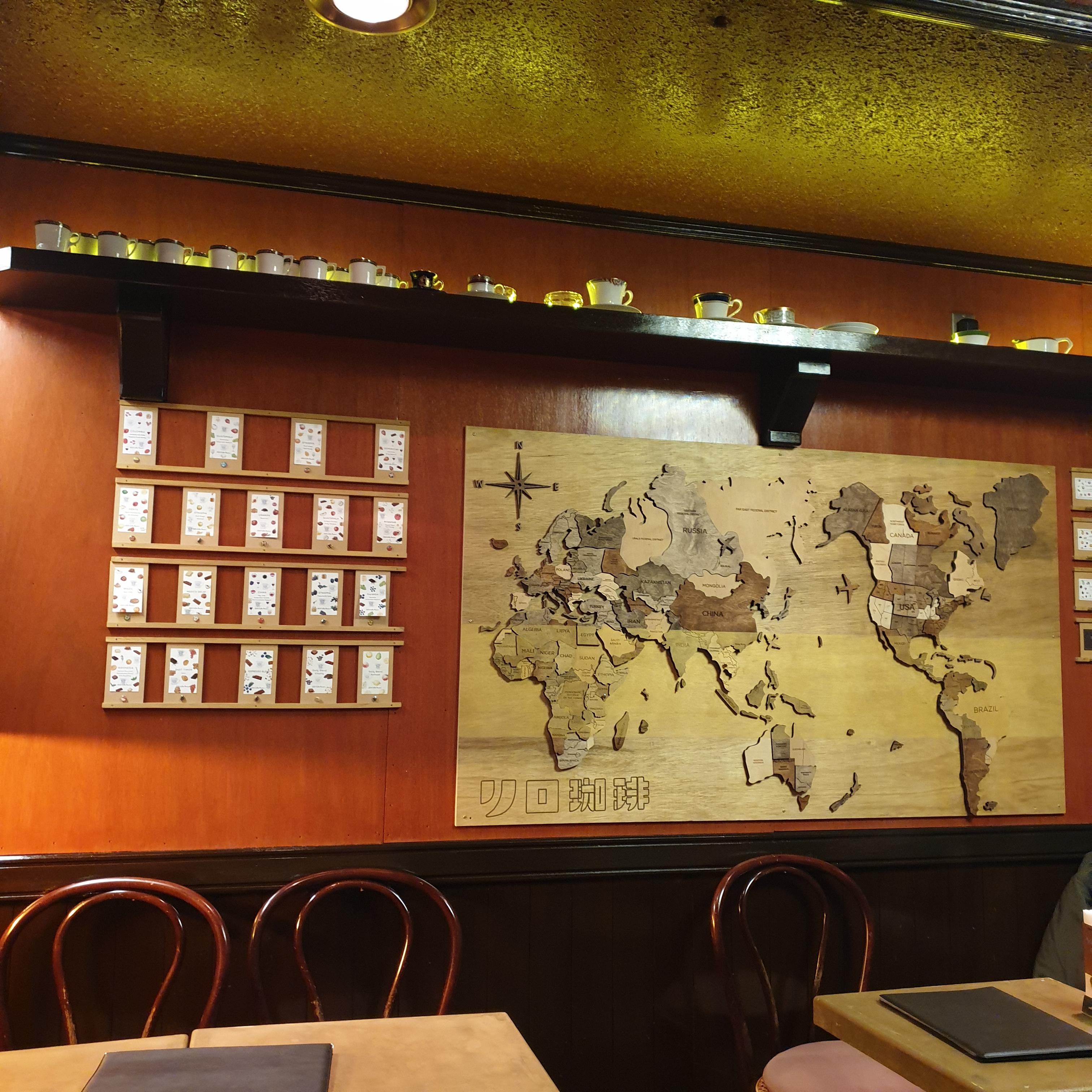 매장 내부는 교토 커피숍 마루야마와 비슷했습니다. 레트로한 우드와 주황색 조명이 역사가 꽤 깊은 카페처럼 보였습니다. 사이폰 커피를 제공하는 카페답게 사이폰 추출도구가 한쪽에 놓여 있었습니다.