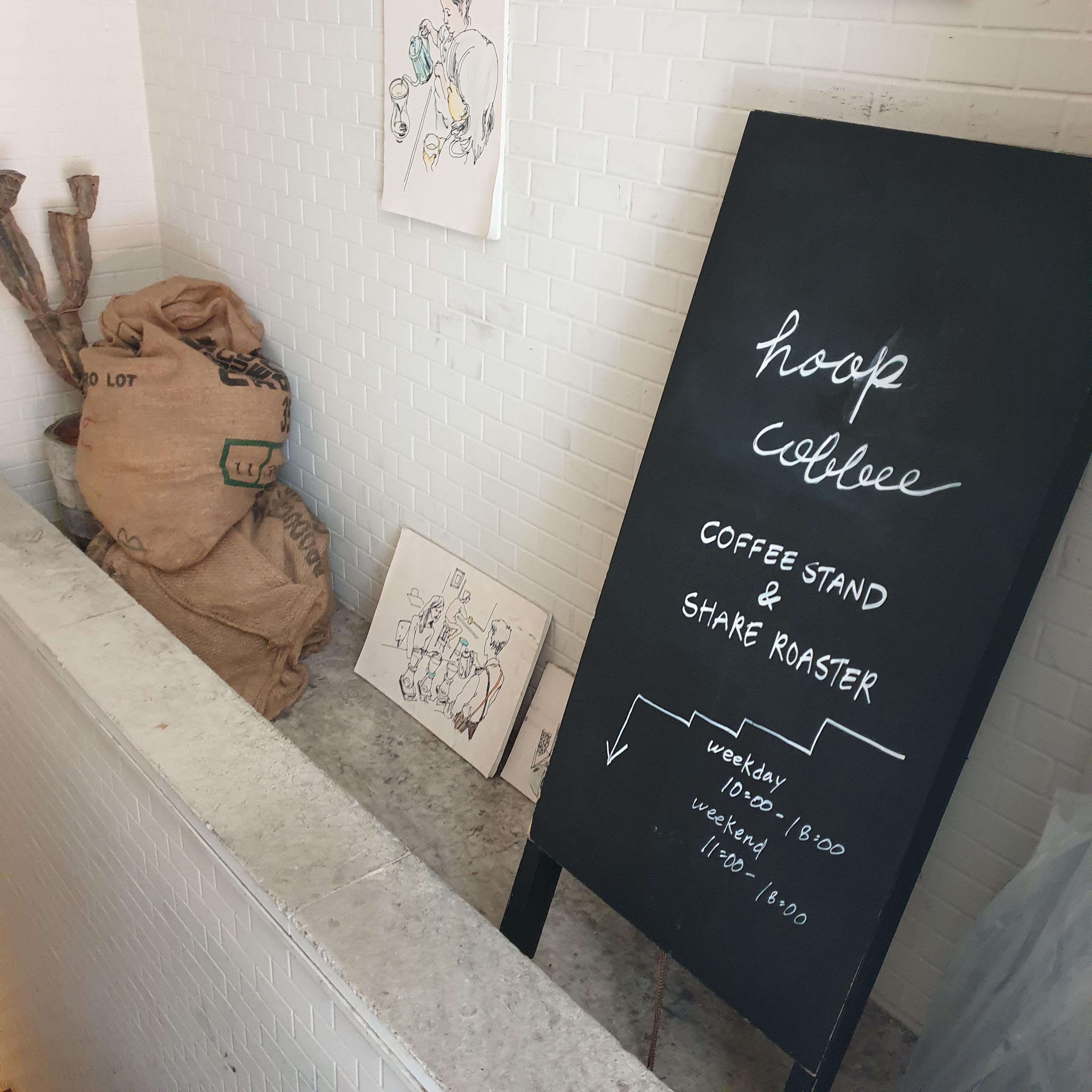 멜 커피 로스터스에서 걸어서 6분 거리에 후프 커피 & 로스터스가 있습니다. 자세히 보지 않으면 간판을 놓칠 수 있습니다. HOOP이라는 간판이 아주 작게 있기 때문입니다.