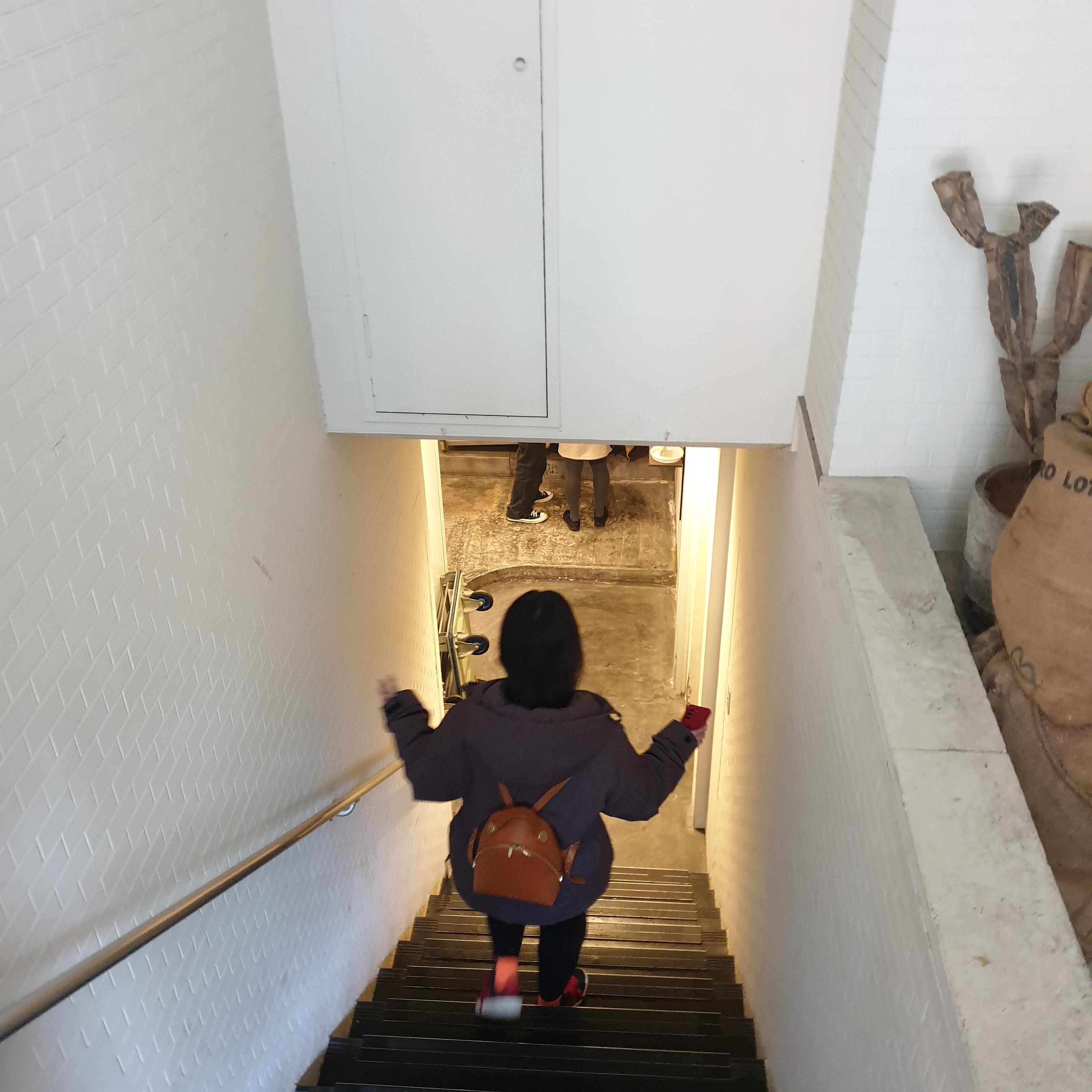카페는 지하에 있었습니다. 흰색 계단을 타고 내려가면 꽤 넓은 매장을 만날 수 있습니다.